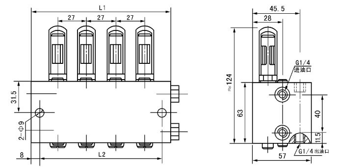 一、使用條件 VSKH-KR型雙線分配器上下面均有出油口,分配器活塞正反向動作時分別從上面和下面的出油口排出潤滑脂。還可以從指示桿的動作直接觀察分配器的工作情況,同時還可通過調整螺釘在規定范圍內,調整出油口的給油量。 分配器適用于公稱壓力為40MPa的雙線式干油集中潤滑系統中。它在兩條供油主管交替的供油壓力作用下,直接由供油壓力控制活塞動作給油,完成向潤滑點定量分配潤滑脂的功能。 | |