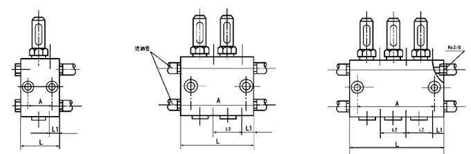 3、給油器的兩個進油口分別與兩條供油管連接,且兩側是貫通的,某一側的進油口不使用時應用R3/8螺塞封堵。
