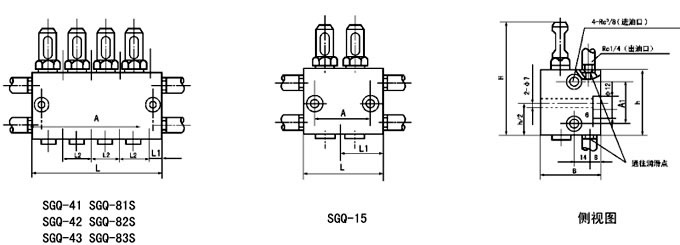SGQ系列雙線給油器適用于公稱壓力為10MPa的雙線式干油集中潤滑系統中,作為一種計量給油裝置。它在二條供油管交替的供油壓力作用下,由供油壓力推動活塞給油,完成向各潤滑點定量分配潤滑脂的功能。